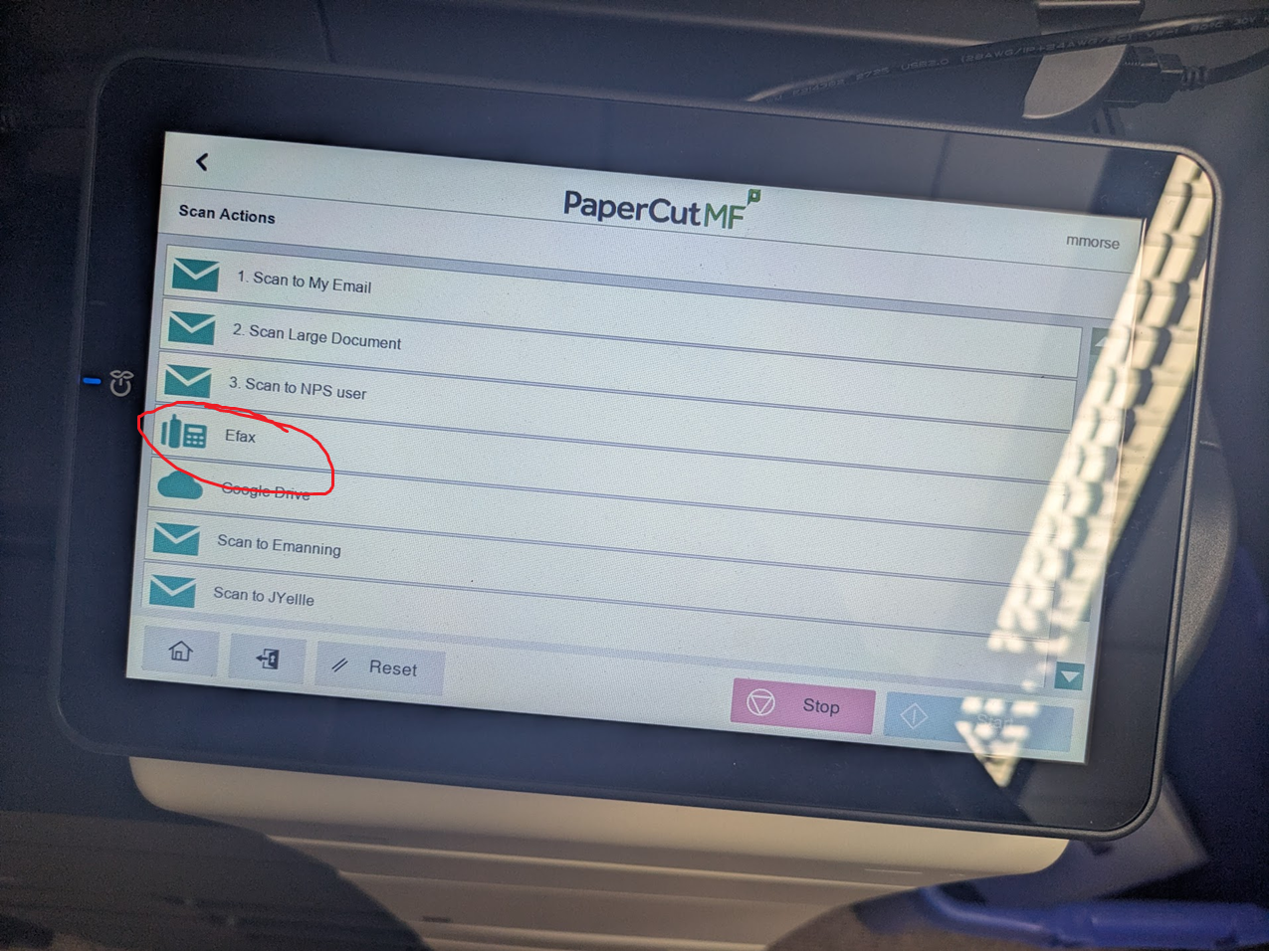 There is now an option in your scan list called "efax" to send a fax via the copier,